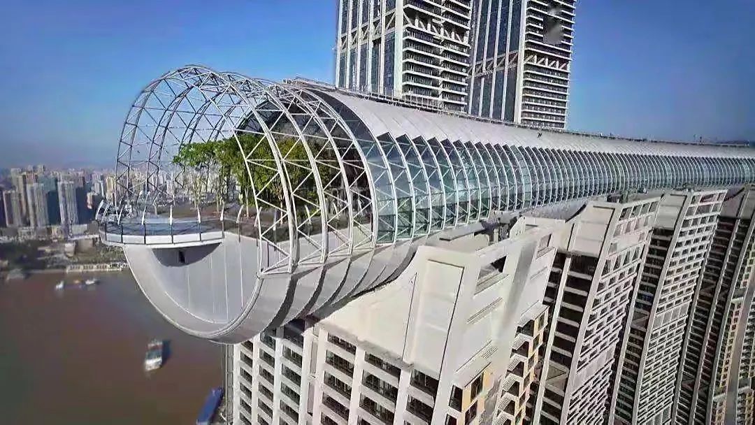 重慶來(lái)福士,位于重慶市渝中區(qū)朝天門,以350米及250米的高度,化形為江面上強(qiáng)勁的風(fēng)帆雄偉壯觀,猶如一艘遠(yuǎn)航的巨輪。是一個(gè)集住宅、辦公樓、商場(chǎng)、服務(wù)公寓、酒店、餐飲會(huì)所為一體的城市綜合體。整個(gè)項(xiàng)目從設(shè)計(jì)上詮釋了“古渝雄關(guān),朝天揚(yáng)帆”的壯美氣勢(shì)。其中,項(xiàng)目設(shè)計(jì)的亮點(diǎn)是連接4座塔樓、位于60層樓高空、長(zhǎng)達(dá)300米的“水晶連廊”,其晶瑩剔透的玻璃構(gòu)造,將把公共空間及城市花園帶到重慶的上空,身處廊橋內(nèi),重慶江景、山景一覽無(wú)余。