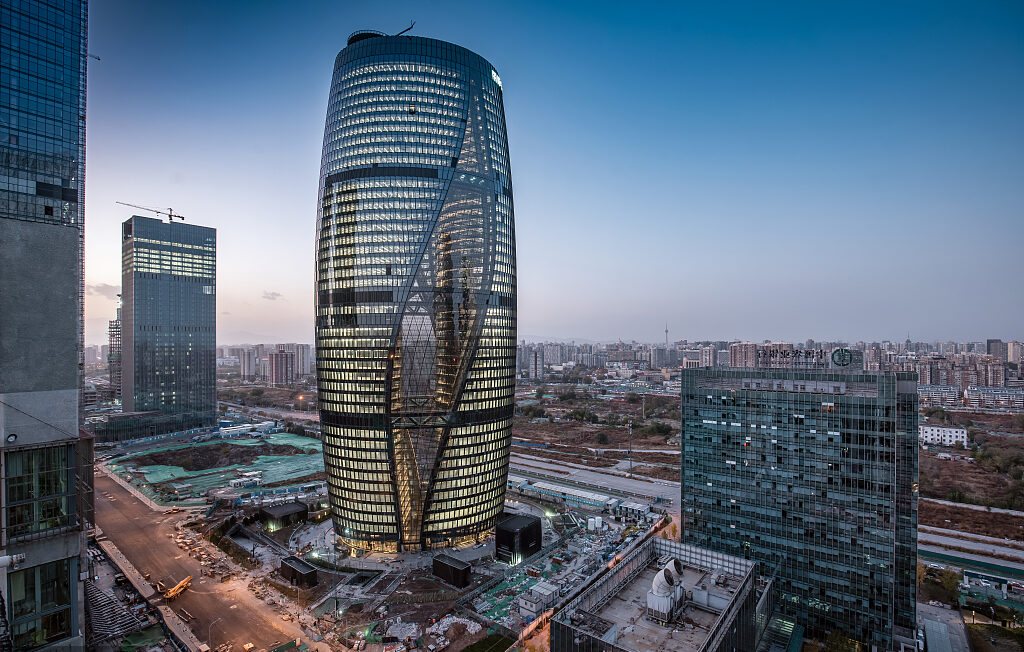 麗澤SOHO被譽(yù)為“夜空之眼” 高達(dá)190米,擁有全球最高的中庭,45°扭轉(zhuǎn)的中庭重新調(diào)整了穿過(guò)基地的對(duì)角線,使其更高的樓層朝向北京城歷史悠久的南北/東西軸線。麗澤SOHO設(shè)計(jì)靈感來(lái)源于獨(dú)特的、高度受限的基地情況。新的地鐵隧道將地塊按對(duì)角線切開,麗澤SOHO也因地鐵隧道一分為二。塔樓周圍環(huán)繞著一個(gè)室外的公共廣場(chǎng),與麗澤商務(wù)中心的圓形廣場(chǎng)相呼應(yīng),用科技匠心完美呈現(xiàn)了麗澤SOHO的靈動(dòng)之美。