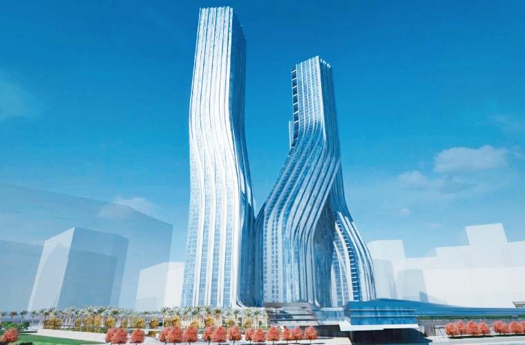 “舞蹈大廈”的建筑設(shè)計(jì)利用了舞蹈動(dòng)作的流動(dòng)性的概念,將三座建筑融合成為一個(gè)整體。三座樓宇共享一個(gè)基座,兩兩連接起來(lái),在第7層,寫字樓和酒店這座塔樓和另一座連接起來(lái),三座融合在一起,共同享有一個(gè)全景餐廳。它們從地面彎曲向上,到高空相互交織,創(chuàng)造出流體動(dòng)畫般的美感。