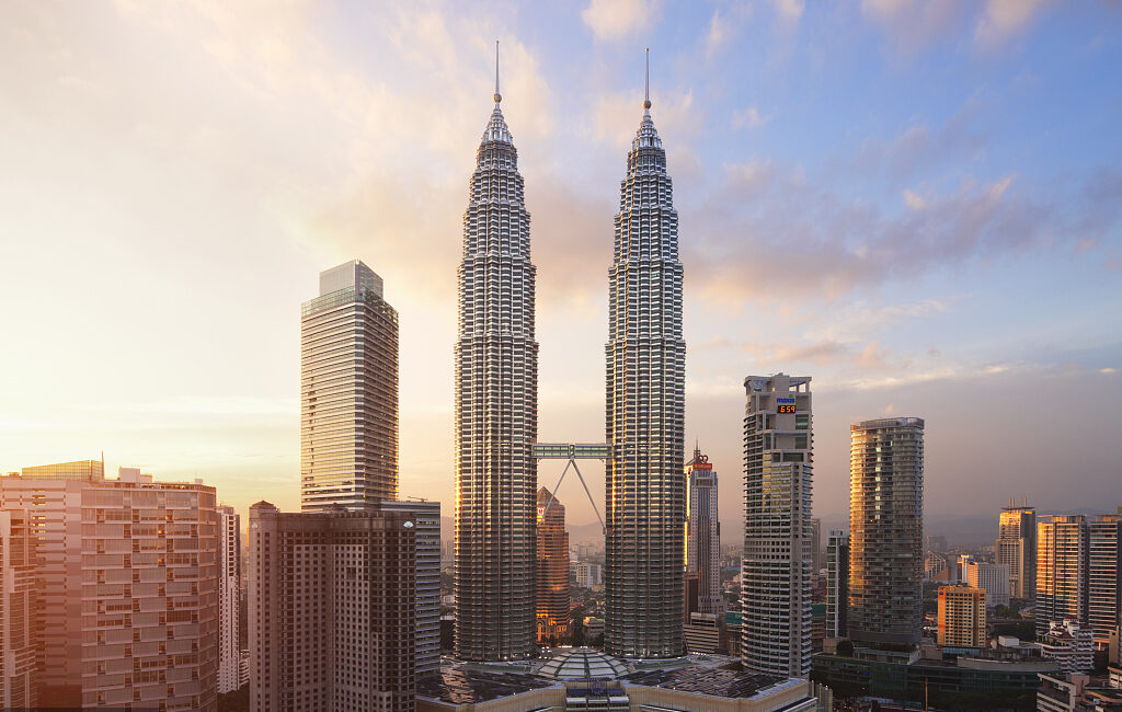 吉隆坡石油雙塔位于吉隆坡市中心,高452米,共地上88層,一對(duì)一模一樣的大廈并肩聳立,中間棧橋相連,設(shè)計(jì)靈感來(lái)自于伊斯蘭教教義。雙子塔是吉隆坡的標(biāo)志性城市景觀之一,是世界上最高的雙子樓和第五高的建筑物,也是著名好萊塢動(dòng)作大片《偷天陷阱》的拍攝場(chǎng)地,片中男女主角肖恩和凱瑟琳從雙子塔逃脫片段,可謂是震驚了世人。