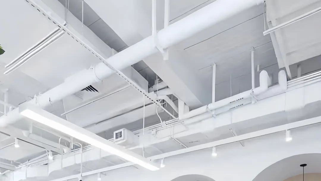 噴漆:在樓板及墻邊靠上邊十幾公分的位置刷一層素色油漆(單色,一般多為白色/灰色/黑色),并把通過其中的所有電線、空調管道(消防水管除外)也刷上同樣的顏色。但油漆中多少會含有有毒物質,其環保性較差。