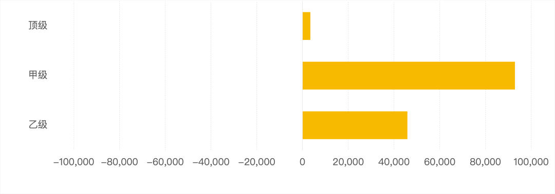 從樓宇等級成交面積來看,各等級寫字樓成交面積對比上季度均有上升,頂級寫字樓變化較小,甲級寫字樓成交面積環(huán)比上升超9萬平方米,乙級寫字樓成交面積環(huán)比上季度上升超4萬平方米。